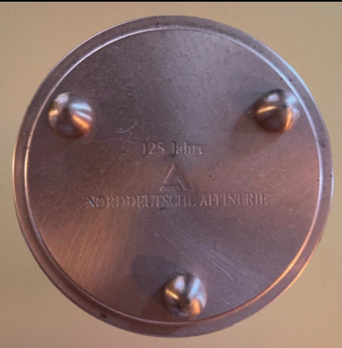 Mooie, grote zandloper genaakt van tin met een soort van roze- goude gloed.
